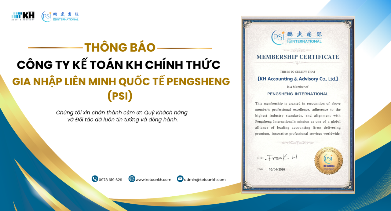 Ngày 10 tháng 04 năm 2026, Công ty TNHH Kế toán & Tư vấn KH (Kiến Hưng) chính thức trở thành Hội viên (Member) của Pengsheng International (PSI) – một mạng lưới hợp tác quốc tế uy tín trong lĩnh vực kế toán, kiểm toán và tư vấn tài chính.