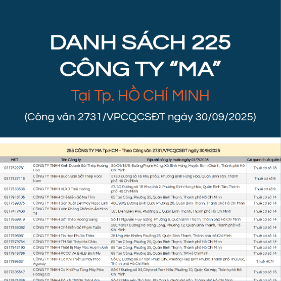 Danh sách 225 Công ty Ma (ngày 30/09/2025)