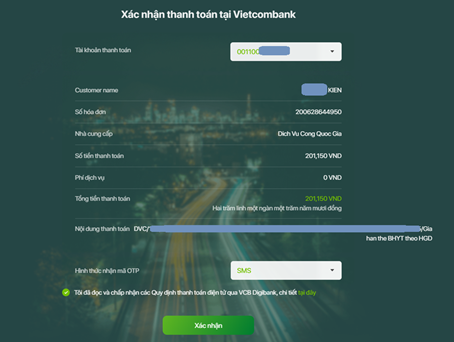 Bước 7: Hệ thống sẽ hiển thị lại thông tin thanh toán một lần nữa để xác nhận. Nếu các thông tin đã chính xác, nhấn vào nút "Xác nhận".